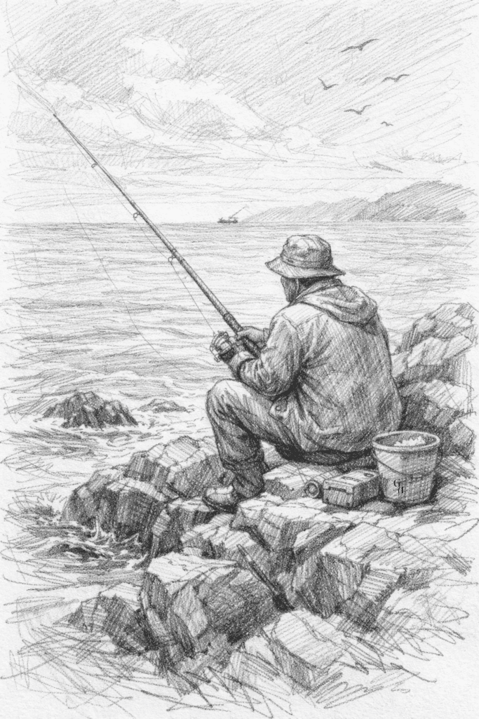 Il pescatore non aspetta solo il pesce: aspetta il momento in cui il mondo smette di fare rumore e resta solo il respiro del mare.