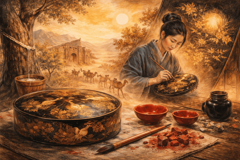 Quando le prime casse e gli scrigni laccati lasciarono le coste orientali, percorsero la Via della Seta come oggetti incantati. Attraversarono deserti e imperi, giunsero in Persia, a Samarcanda, a Costantinopoli. Erano doni tra sovrani, merci che valevano più dell’oro.