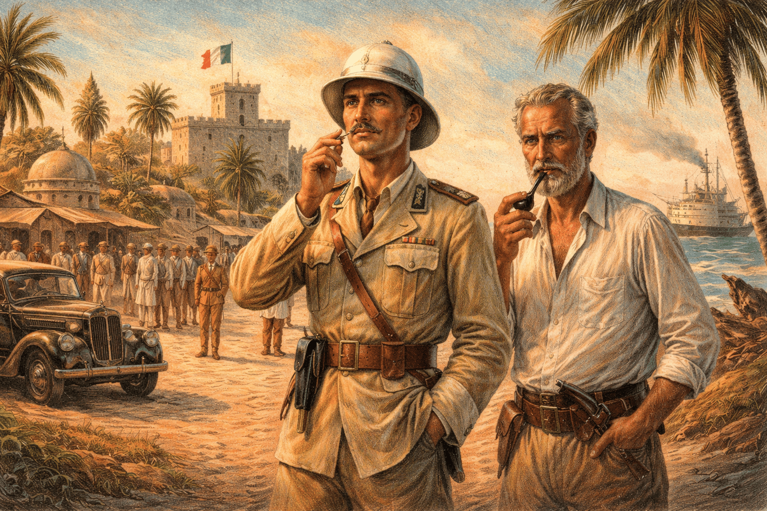 Henry de Monfreid era già comparso nel quarto romanzo della serie, “Le nebbie di Massaua”, del 2018, e aveva avuto un ruolo importante, quasi da co-protagonista della storia. Ho letto l’ottima biografia di Stenio Solinas, ma conoscevo già il personaggio, un avventuriero affascinante, e avevo anche letto alcuni dei suoi romanzi autobiografici ambientati nel Mar Rosso e nel Corno d’Africa. Quando de Monfreid capita a Massaua s’incontra sempre con il maggiore e in questo caso la cena dei due con gli altri amici dell’ufficiale diventa l’occasione per rievocare le prime indagini di Morosini in terra africana.