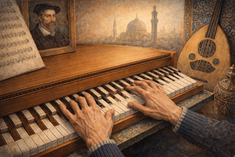 Sostenendo che la musica del suo tempo fosse limitata, Vicentino inventò l’Archicembalo, uno strumento visionario con 31 tasti per ottava. Senza saperlo, stava costruendo una “tastiera per Maqamat”: un sistema capace di riprodurre quelle stesse sfumature che i musicisti arabi perfezionavano da secoli.