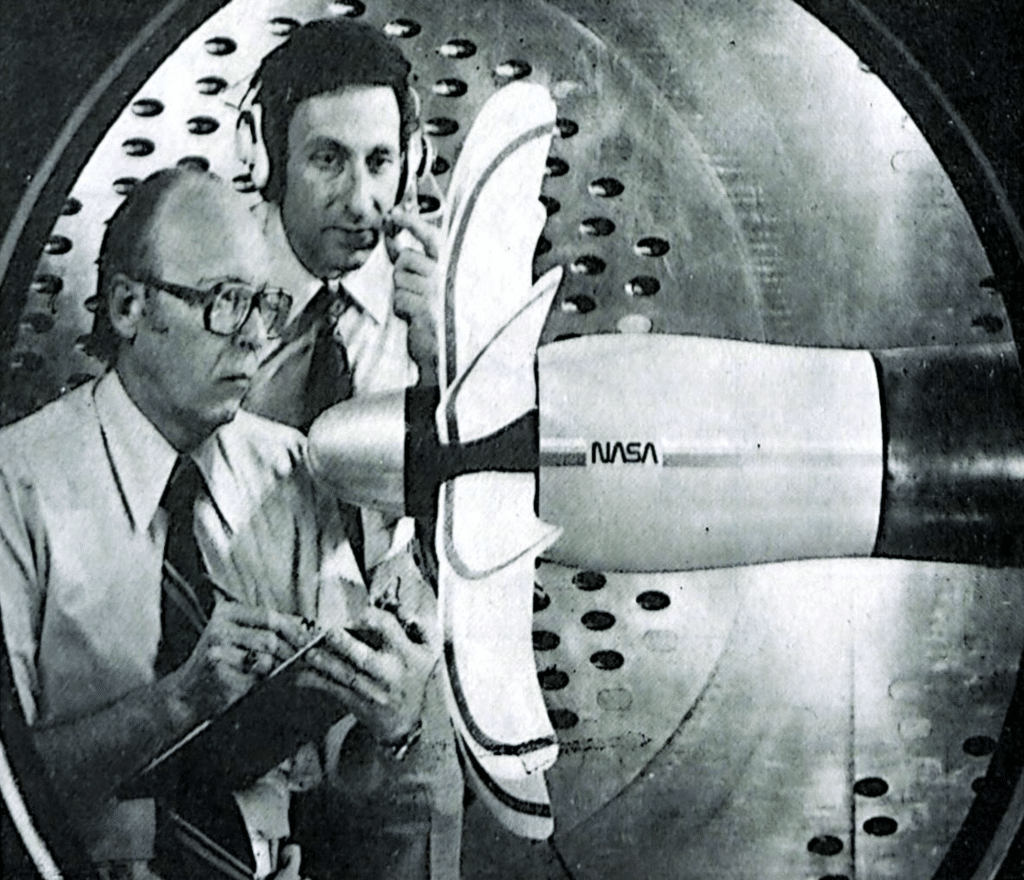 Gli esemplari di eliche con un diametro di 62.2 cm erano tutti collaudati nella galleria aerodinamica Lewis della NASA al banco di prova da 1000 HP (PTR). La figura 9 dimostra il modello SR 3 con un angolo di freccia di 45 gradi installato sul PTR.